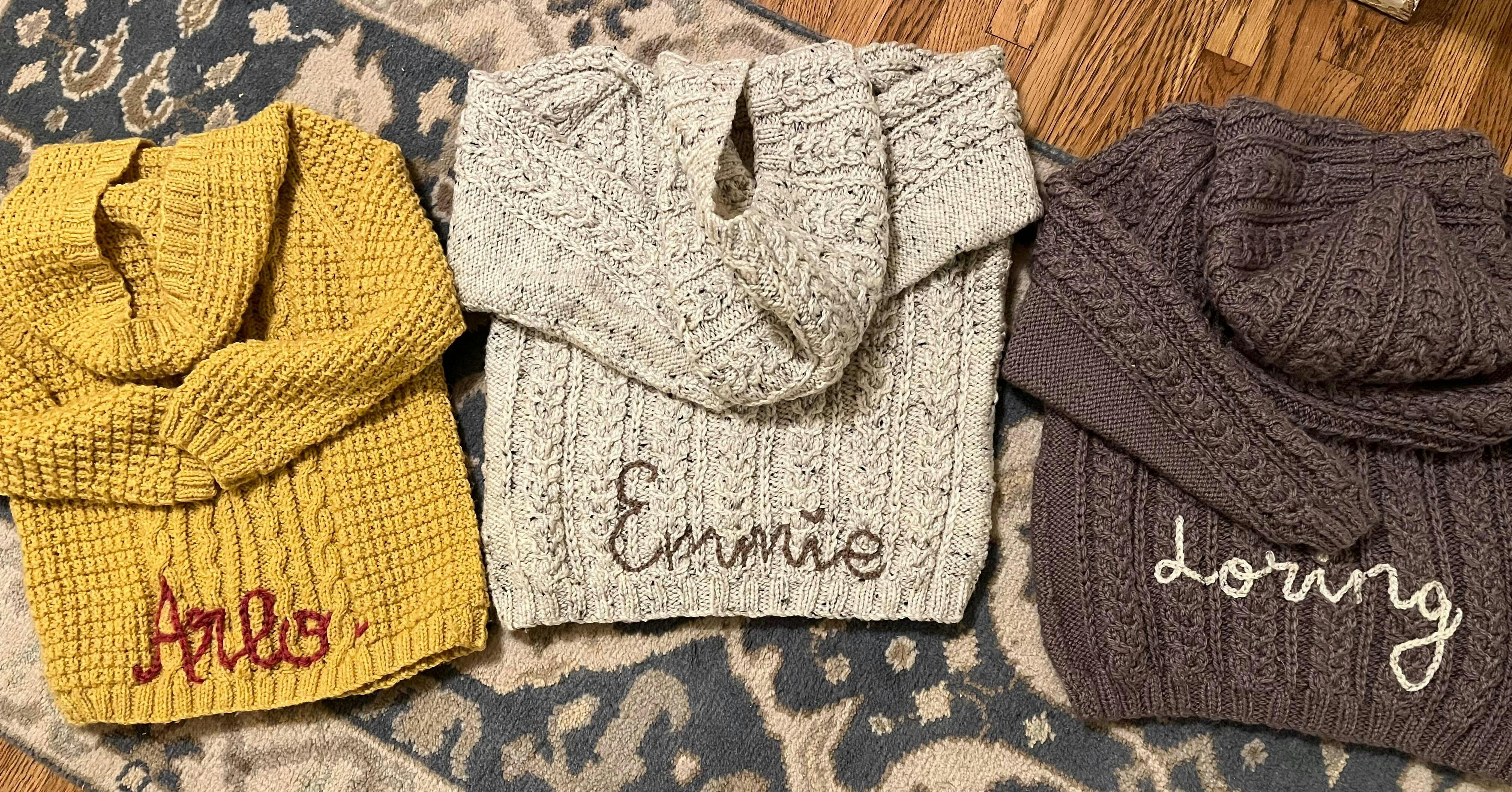 Care: Hand wash in cool water or inside out on the delicate cycle with mild detergent. Use a laundry bag for extra protection. Lay flat to dry. Do not wash with items that may pull or snag knit and embroidery. I am not responsible for damage to your sweater.